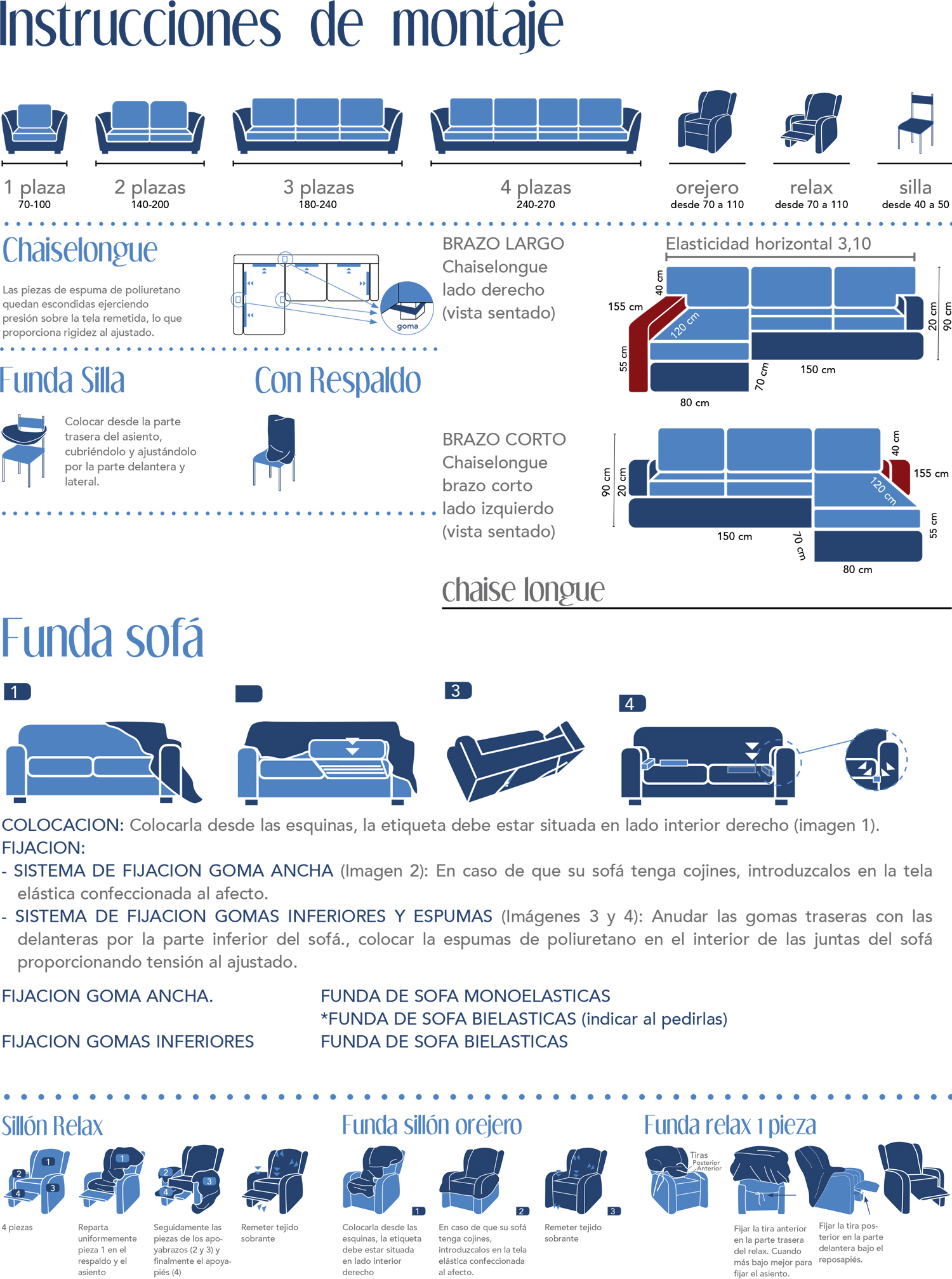 Funda de Sofà amb diferents teixits, fàcil de col·locar i de rentar amb teixits monolàstics, bielàstics i ultraelàstic.